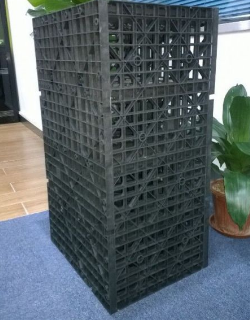 雨水收集裝置并不是單純的一個(gè)大儲(chǔ)水罐,而是采用無(wú)毒無(wú)害的聚丙乙烯材料做成的一個(gè)個(gè)幾十厘米見方的籠狀儲(chǔ)水器。