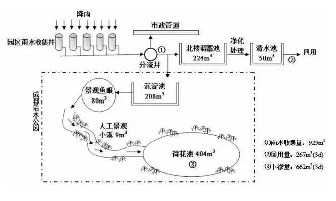 規劃設計要依據地區的氣候條件及降雨、水文地質、水環境、水資源、雨水水質、給水排水系統、建筑、園林道路.