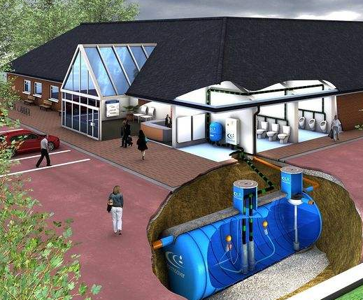 雨水收集系統。你也可以安裝一個雨水收集系統,它由地下的大水箱組成。